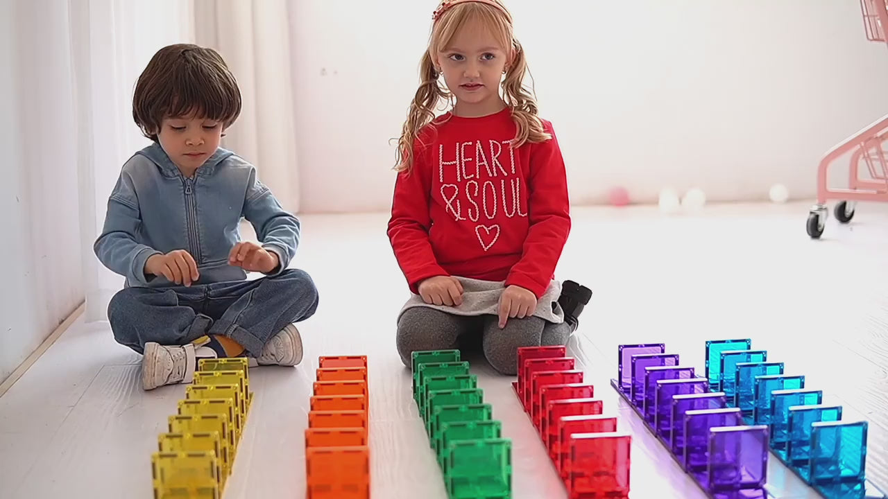Questo set di blocchi magnetici permette ai bambini di costruire forme 2D e 3D, utilizzando immaginazione e creatività per giocare e costruire. Le nostre tessere magnetiche stimolano lo sviluppo cognitivo, la consapevolezza spaziale, la coordinazione occhio-mano, la motricità fine e grossolana, e aiutano i bambini a comprendere concetti scientifici e matematici — tutto attraverso il GIOCO!